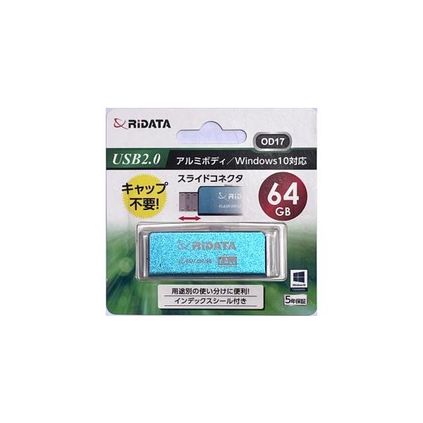 【メール便選択可】RIDATA USB-A OD17 64GB BL 2.0 アルミボディ スライド式