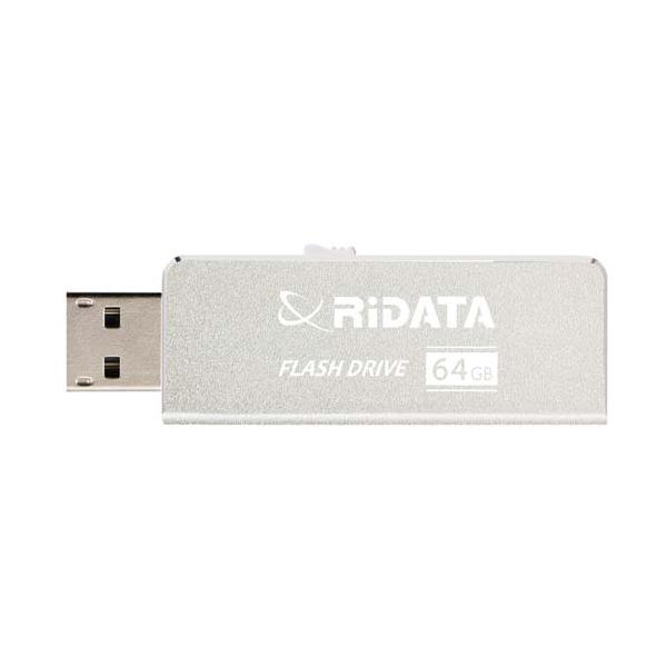 スライド式 USB 2.0 64GB アルミボディ シルバー USBメモリー インデックスシール付 片手で簡単スライド式 RI-OD17U064 SV usb RiDATA メール便OK ポスト投函