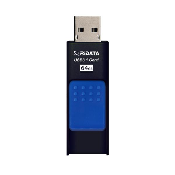 スライド式 USB 3.1 Gen1 64GB 超高速データ転送 コネクタ本体収納 片手で簡単操作 RI-HD50U064 BL ブルー USBメモリー usb RiDATA メール便OK ポスト投函