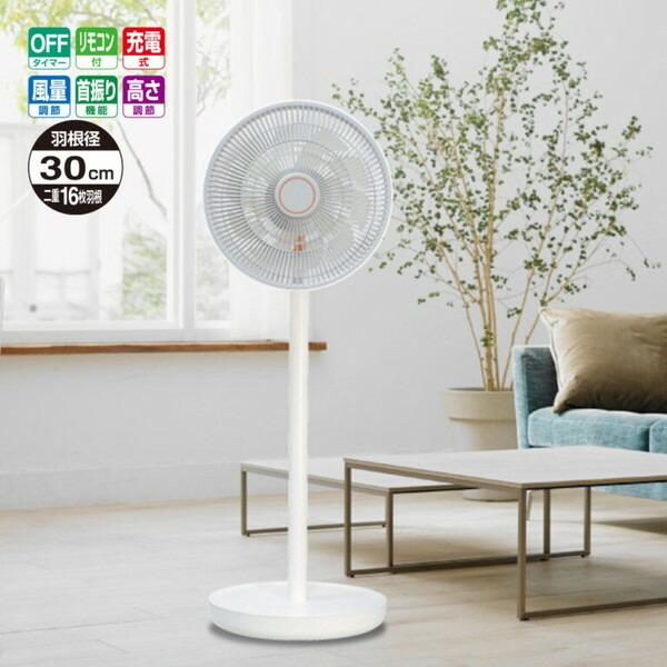 扇風機 DCモーター 風量4段階 首振り リビング扇風機 エスケイジャパン 充電式扇風機 SKJ SJM-E909(W) ホワイト メーカー直送