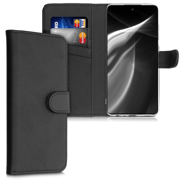 上品なレザールック: この黒色の手帳型保護ケースは頑丈な合皮レザーから作られ、あなたのスマートフォンを傷や汚れからしっかりと保護します。