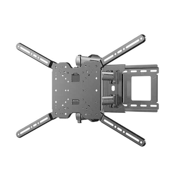 テレビを壁から38.1cmまで引っ張り出し、手の軽い動きで左右に60°ずつ(合計120°)、下向き12°、上向き11°まで傾けることが可能です。
