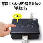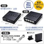 - 4台のパソコンで1台のUSB機器を共有できるUSB切替器です。ボタン一つで簡単に切り替えることができます。 複数のパソコンでプリンタやマウス・キーボード、外付けハードディスクの共有に便利です。(※バスパワー仕様の外付けハードディスクやスキャナー等の消費電力が大きい機器を接続する場合は、電力不足により動作が不安定になる場合があります。※マウスやキーボード等、すべての動作を保証するものではありません。) 現在接続されているパソコンがわかるLEDランプ付きで、接続状況がひと目でわかります。 ボタンを押すとカチッと音がするので、ボタンを押せたかが分かりやすくなっています。 ■保証期間:ご購入日より6ヶ月