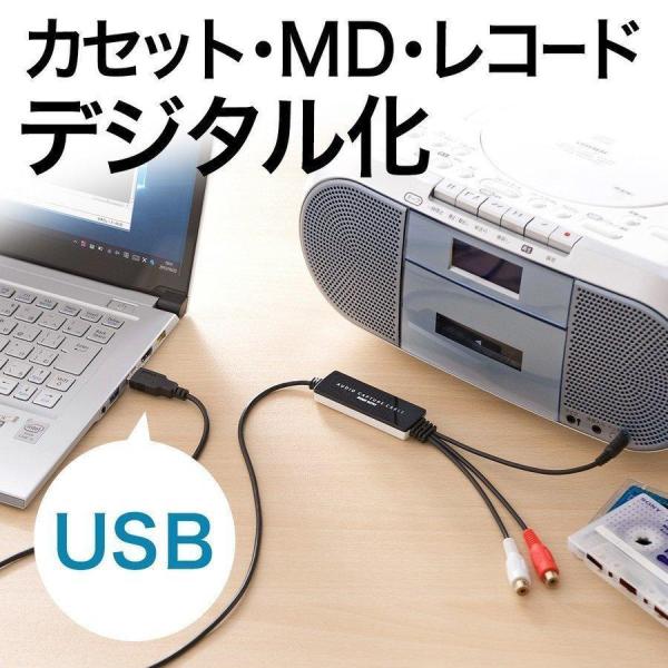 オーディオキャプチャー ケーブル USB カセットテープ 磁気テープ レコード MD デジタル化 データ化 変換 保存 保管 ソフト付属 400-MEDI017