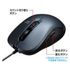 - 【仕様】対称形で使いやすい、シンプルな有線マウスです。赤色の光学式より感度の高い青色LEDセンサーを搭載し、光沢感のあるデスク面でもマウスパッドなしでスムーズな操作が可能です。マウスポインタを動かさず、手元のサイドボタンで操作できる「戻る・進む」の2ボタンを搭載しており、Webブラウザで操作をスピーディに行えます。カーソルスピードを800・1200・2400・3200カウントに切り替えることができます。 ●カラー:ガンメタ●インターフェース:USB HID仕様バージョン1.1準拠※USB3.1/3.0/2.0インターフェースでも使用できます。●コネクタ形状:USBコネクタ(Aタイプ)●分解能:800・1200・2400・3200カウント/インチ●読み取り方式:ブルーLEDセンサー方式●ボタン:2ボタン、2サイドボタン、ホイール(スクロール)ボタン、カウント切り替えボタン●サイズ:幅62×奥行109.5×高さ40mm●重量:約82g●ケーブル長:1.5m●対応機種:Windows搭載(DOS/V)パソコン、Apple Macシリーズ ※USBポート(Aタイプコネクタ)を持つ機種 ●対