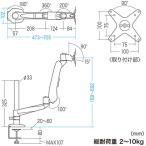 - デスクへ取り付けるタイプです 2〜10kgまでのディスプレイに対応します 映像の鑑賞はもとよりオフィスの案内掲示用 病室などの液晶テレビの設置などにも使用できます。アームにケーブルホルダーとケーブルフックがありケーブルを引っ掛けることができます。アーム関節が1ヵ所+垂直可動のタイプです。■サイズ:寸法図参照■重量:3.2kg■梱包:1個口/130×235×515mm・3.7kg■出荷形態:ノックダウン組立式■材質:本体アーム・ポール/アルミ ディスプレイ固定プレート/スチール(エポキシ樹脂粉体塗装) 樹脂パーツ/ABS樹脂■可動範囲(1):角度(アングル)/100° 画面上下(チルト)/105° 画面左右(パン)/200°■可動範囲(2):画面回転(ローテーション)/360° 左右(スウィング)/360° 垂直(バーティカル)/0〜270mm■アーム可動範囲:アーム間接1/左右180° アーム間接2/360° 垂直(アングル)100° アーム間接3/左右200°■総耐荷重:2〜10kg■付属品:ディスプレイ取り付け用ネジ×4本(M4×12)