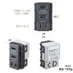 5V 2.4A 2ポート高出力急速充電が可能な、AC1個口付き壁埋め込み型USBコンセント。空港、ホテル、飲食店などの商業施設やオフィス、一般家庭のコンセントなどに便利。グレー。
