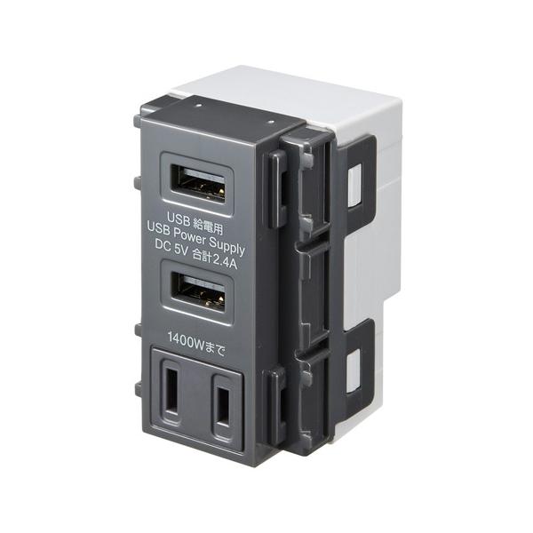 訳あり新品 埋込USBコンセント AC付き 給電用 5V 2.4A グレー TAP-KJUSB2AC1GY サンワサプライ 外装パッケージにキズ、汚れあり