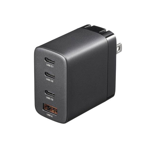 サンワサプライ USB PD対応AC充電器 PD65W・C×3+A×1 1台で複数デバイスを同時充電可能 ブラック ACA-PD107BK