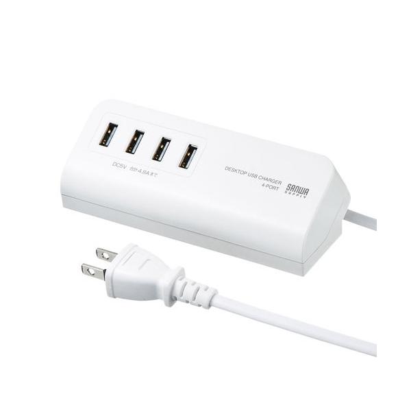 マグネット付USB充電器 USB4ポート ホワイト 強力マグネットでスチール面にしっかり固定 サンワサプライ ACA-IP53W 送料無料 メーカー保証 新品