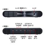 - 商品説明(スペック) ※メーカー直送です。沖縄・離島配送不可となります。当店は正規販売代理店です。 特長 モバイルプロジェクターとしては最高クラスのフルHD解像度で投影が可能です。 小会議やミーティングで使える最高輝度700ルーメンです。 Type-C機器から直接映像を出力することができるType-Cポート付きです。 ※接続機器がType-Cオルタネートモードに対応している必要があります。 Type-Cポートを搭載したMacBookなどType-Cケーブルを接続するだけで使えます。 HDMI入力端子を2ポート内蔵しており、HDMI出力できるスマートフォンや純正の「Apple Digital AVアダプタ」を使用したiPhone、iPad、iPod Touchの画面をそのまま出力することができます。 台形補正機能付きです。水平最大40度まで自動的に補正されます。 10200mAhの大容量バッテリーを内蔵しています。ACアダプタに接続しなくても約90分の投影が可能です。 メーカー保証期間180日 ※当店発注日からになります タイミングによってはメーカー様在庫切れの場合があります。USBポートを搭載しており、モバイル機器などを接続すれば大容量バッテリーとしても使用できます。 カメラ三脚に取付けできます。 ※三脚は付属しません。 仕様 光学エンジン DLP 解像度 1920×1080 アスペクト比 16:9 フォーカス 手動 ※ダイヤルを回すタイプではなく、ボタンを押して調整するタイプです。 光源 LED 光源寿命 約20000時間 明るさ AC接続時/700ルーメン 内蔵バッテリー動作時/500ルーメン ※ACアダプタを抜くと、内蔵バッテリーの動作に切替ります。 コントラスト 400:1 スクリーンサイズ 22〜100インチ 投射距離 0.6〜2.7m 入力端子 HDMI Ver.1.3 接続機器 HDMI出力できるスマートフォン・タブレット・パソコンなど Type-Cオルタネートモードに対応したType-C搭載機器 電源 ACアダプタ、リチウムイオンバッテリー 連続投影時間 90分 本製品の充電時間 最大5時間 バッテリー容量 10200mAh USB出力 5V 1.5A 本体サイズ W242×D137×H38mm 重量 900g ケースカラー ブラック 付属品 ACアダプタ×1個、HDMIケーブル×1本、Type-C Type-Cケーブル(映像出力用)×1本、取扱説明書兼保証書 領収書について 出荷後、翌日以降に楽天市場の注文履歴から領収書の発行ができます。 Copyright (C) 2019 YMS G.K. All Rights Reserved.