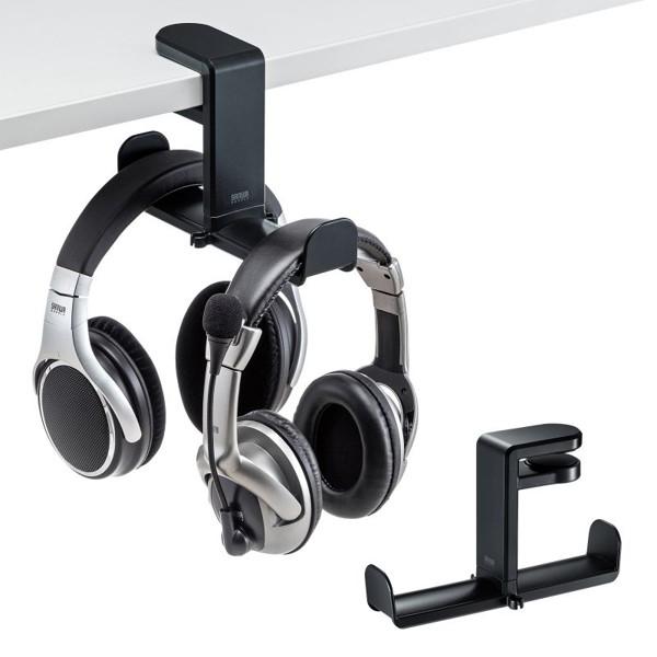 回転式 ヘッドホンフック Wタイプ 簡単クランプ 2台対応 ヘッドホン掛け ヘッドフォン掛け デスクや机、棚に PDA-STN19BK サンワサプライ