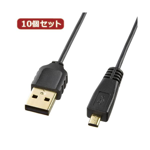 10個セット サンワサプライ 極細ミニUSBケーブル(ミニBタイプ) KU-SLAMB810X10
