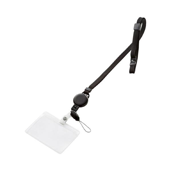 リールがついた便利なストラップ。ソフトタイプのIDケースつき。