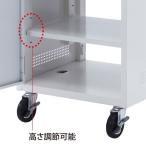 プロジェクターやAV機器などを鍵付きで収納できるセキュリティ性に優れたプロジェクター台。5段階にプロジェクターの角度調整可能。幅510×奥行485mm。