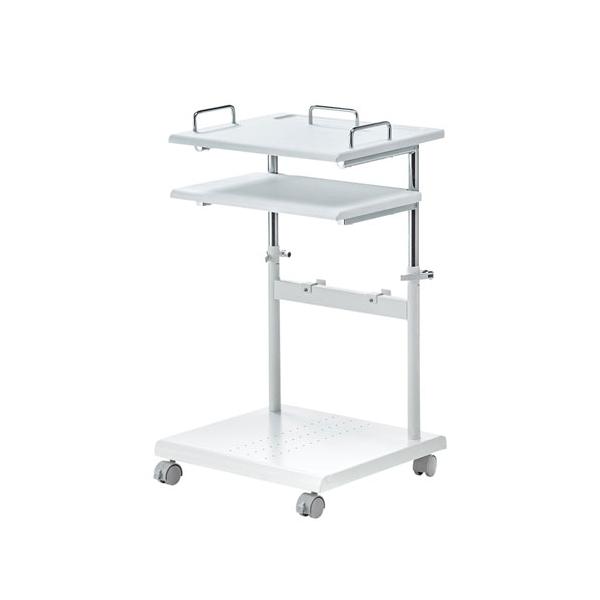 - 天板部の高さ変更が可能なプロジェクター台。機器などの設置に便利な中棚・下棚付き。※箱にキズ、汚れがありますが商品は新品です。<特長>●レバーの開け閉めで、天板の高さを変更することができます。※中棚も連動して一緒に動きます。●プロジェクターは天板にも中棚にも設置可能です。※天板と中棚の内寸は95mmですが、天板下に丸パイプ(直径22mm)があるため、位置によっては内寸が73mmになります。●中棚にプロジェクターを置き、天板に置いたノートパソコンを操作することも可能です。●天板を会議テーブルなどにかませて使用できるので、通路を確保できます。●未使用時は高さを低くして、プロジェクターを載せたままデスク下に収納できます。●天板、中棚それぞれに、リモコンなどが置けるトレー付きです。●ケーブルをまとめて引っかけておける、ケーブルフック付きです。<仕様>■サイズ:W430×D400×H630〜890mm※天板の高さは590〜850mmです。(ガードの高さ/40mm)天板サイズ/W430×D350mm■重量:9.3kg■出荷形態:ノックダウン組立式■梱包:1個口/985×429×76mm・10.6kg■材質:天板・中棚/木製(塩ビシート貼り)フレーム/スチール(エポキシ樹脂粉体塗装)■総耐荷重:15kg■メーカー保証期間:初期不良のみ<関連キーワード>4969887142233 PR-17,プロジェクター台,高さ調整,中棚,下棚・トレー,ケーブルフック,耐荷重15kg,サンワサプライ