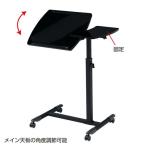 - 使い方色々コンパクトミニデスク。使用方法に合わせて高さ4段階可変。ブラック。※箱にキズ、汚れがありますが商品は新品です。<特長>●補助デスクとしての使用に便利です。 ●ノートパソコンを置いてのプレゼンテーションなどをする際に便利です。●高さを700・760・820・880mmの4段階で変更できます。●キャスター付きで移動も簡単に行えます。●ノートパソコンを乗せる側は天板の角度調整が可能です。●固定されている天板には携帯電話や飲み物を置くことができます。※機器を載せたまま移動しないでください。落下する恐れがあります。 <仕様>■カラー:ブラック■サイズ:W700×D450×H700・760・820・880mm■重量:6.8kg ■梱包サイズ:1個口/W745×D495×H95mm・7.7g ■出荷形態:ノックダウン組立式 ■耐荷重:5kg■材質:天板/MDF(塩ビシート貼り)、フレーム/スチール(エポキシ粉体塗装)<関連キーワード>病院 カフェテーブル プレゼン 移動 ノートPC 講演 演台 サンワサプライ
