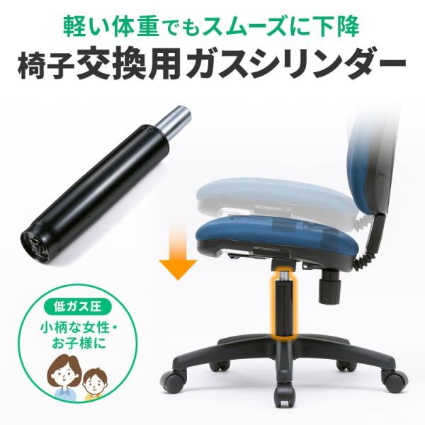 軽い体重でも座面の高さが変更できる低ガス圧シリンダー。SNC-CYL サンワサプライ