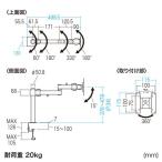 机上面を有効活用できる、水平多関節モニタアーム。20kgまで対応した高耐荷重仕様。高さ45cm