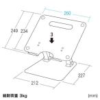 - 商品詳細ノートパソコンを見やすい高さ・角度に調節できるアルミ製スタンド。特長●フリーで高さ・角度調整ができる、ノートパソコンスタンドです。●POSレジ用の端末など、タブレット機器の設置も可能です。●キーボードを接続して、デスクトップパソコンのようにして使用することができます。●キーボードを使わない時は台下に収納することができます。●コンパクトに折りたためて、持ち運びもできます。<ご注意>※角度調整は表記されている角度よりも大きい範囲で調整できますが、ご使用の際に転倒の恐れがありますので、寸法図に表記された範囲の角度で調整し、ご使用ください。仕様■サイズ:W260×D250×H60mm■重量:0.95kg■梱包:1個口/267×256×70mm・1.06kg■出荷形態:組立出荷■材質:アルミ■角度調節:0から40°■総耐荷重:3kg対応機種■対応サイズ:W320×D260mm表示された検索窓に商品番号を入力してください【 商品番号:CR-38 】【2019年12月登録】関連キーワード:ノートPC台 ノートパソコン台 ノートPCスタンド サンワサプライ 4969887193563⇒こちらの商品のレビューを、もっと読みたい方はこちら