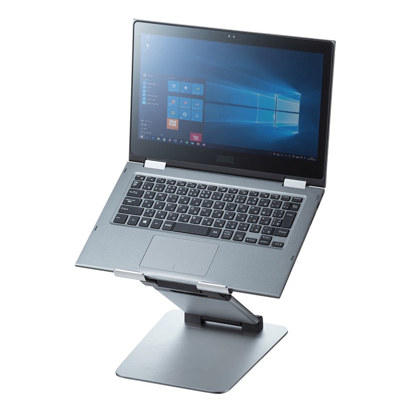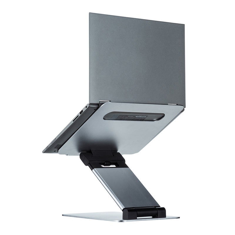 ノートパソコンを見やすい高さ・角度に調節できるスタンディング対応アルミ製スタンド。