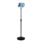 - iPad・タブレットを見やすい高さに調節可能。7〜13インチタブレットとiPad mini〜iPad Pro対応。※箱にキズ、汚れがありますが商品は新品です。<特長>●iPad mini、iPad、iPad Air、iPad Pro・タブレット用スタンドです。●使用しやすい高さに調節でき、任意の位置で固定することができます。●iPad・タブレット取り付けホルダーは挟み込みタイプで、取外しもできます。●見やすい位置に角度を調整することができます。●iPad・タブレットをホルダーに取り付けたままで、縦、横に360°回転できます。●台座は安定した重量があります(円盤の高さ60mm)。<ご注意>※機器にケースなどを取付けた場合はホルダーに挟み込みができない場合もあります。(挟み込み200〜240mm、厚さ10mm以下対応)対応サイズと機器サイズをご確認ください。<仕様>■カラー:ブラック■サイズ:直径282×H900〜1440(支柱)mm■重量:約5.5kg■梱包:1個口/760×310×136mm・約6.2kg■出荷形態:ノックダウン組立式■材質:本体/スチール(エポキシ樹脂粉体塗装)、ホルダー/PC(ポリカーボネート)■総耐荷重:1.5kg■保証期間:初期不良のみ■取扱説明書:日本語取扱説明書あり■対応機種:iPad mini、iPad、iPad Air、iPad Pro、7〜13インチ程度のタブレット(挟み込み200〜240mm、厚さ10mm以下対応)<ご注意>※iPad10.2インチ(第7/8/9世代)、iPad Air(2019)、10.5インチiPad Pro 2017は対応していません。<関連キーワード>MR-TABST12N,高さ可変機能付き,iPad・タブレットスタンド