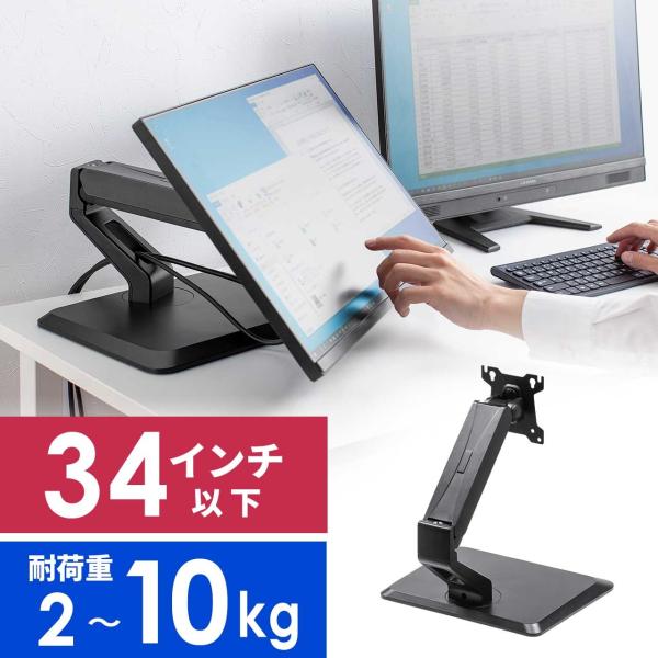 モニターアーム モニタースタンド ガス圧 ガススプリング 黒 ブラック 34インチ対応 ディスプレイアーム 卓上 サンワダイレクト 1画面 シングル 100-LA064