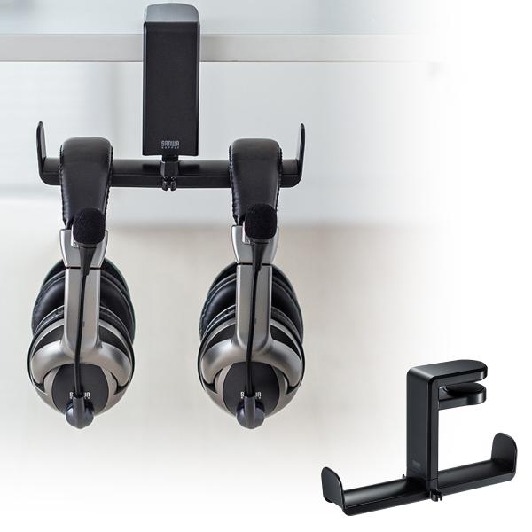 ヘッドホンフック 回転式 ダブルタイプ 2個掛け可能 ブラック PDA-STN19BK サンワサプライ