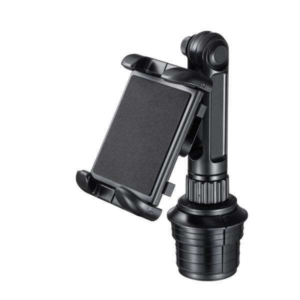 ドリンクホルダーにスマートフォンやタブレットを設置できる、車載ホルダー。ドリンクホルダーに挿し込んで固定するだけのかんたん設置。工具不要。