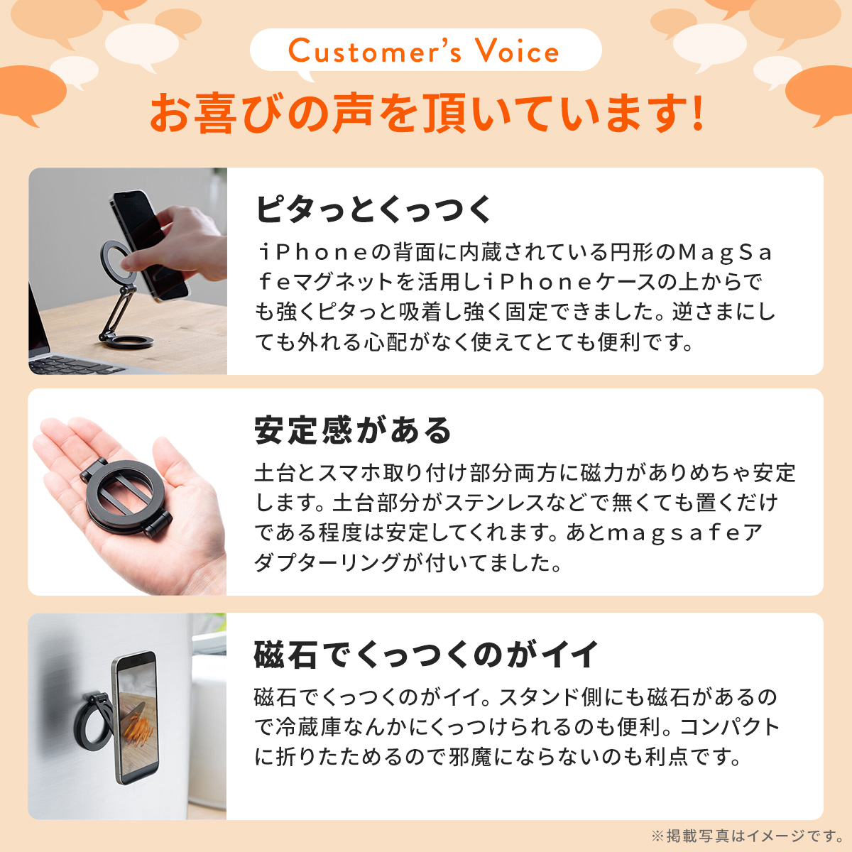 スマホスタンド マグネット 磁石 MagSafe 携帯 iPhone Android メタルリング付属 スマホリング コンパクト 折りたたみ スマホホルダー 車 車載 200-STN082