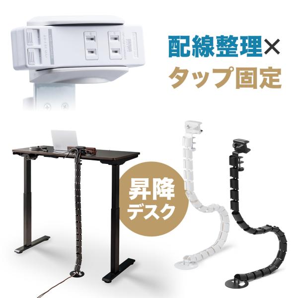 ケーブルカバー 昇降デスク用 タップホルダー付き クランプ式 ケーブルガイド 130cm 配線カバー スパイラルチューブ ケーブル まとめる ブラック 200-STN084