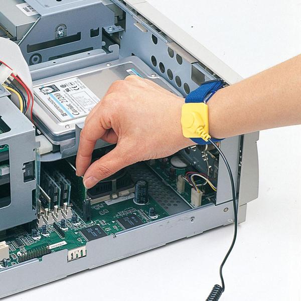 - 静電気放電から電子機器を守る。※箱にキズ、汚れがありますが商品は新品です。<特長>●人体摩擦によって生じる静電気をアース線から放電しますので、静電気が起こりやすい機器(ボード・メモリなど)を扱う際の破損を防止します。●アースケーブルはカールコードになっていますので、約2.5mまで伸縮可能です。●布製の青色リストバンドは調節自在です。<使用方法>1.リストバンドを作業する手首につけます。2.アースケーブルをリストバンドとつなげます。3.アースケーブルのクリップ部分をアースします。(OAタップのアースターミナルなどにつないでください。)4.作業している場所を離れる際にはアースケーブルを外してください。5.伝導チェックはテスターで定期的に行ってください。(アースケーブルの端から端までの測定値は1?2MΩです。)<仕様>※ボード・メモリなどを取り扱う際には、商品の取扱い説明書をよくお読みになった上で作業を行ってください。取扱いを熟知されていない方やお子さまの使用による、ケガ・破損・損害などには直接・間接にかかわらず責任を負いかねます。<関連キーワード>帯電,防止,リストバンド,静電気