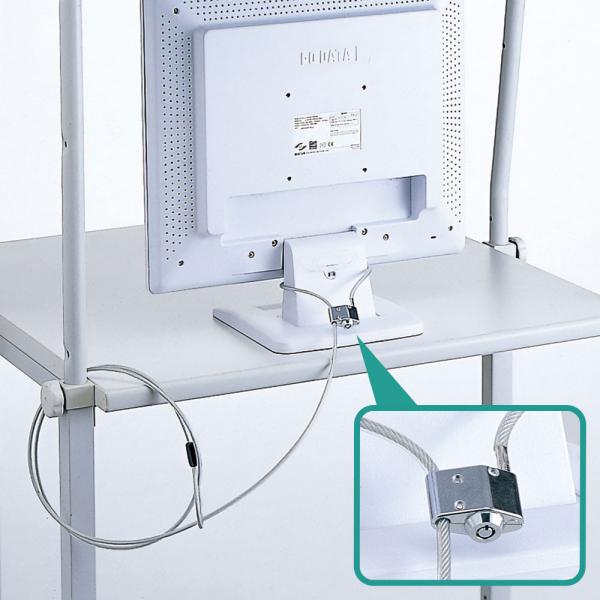 - ↑↑↑正確な在庫状況は上記バナー「在庫状況を確認する」をクリックして頂き、必ずご確認ください。 ■机などの固定物にワイヤーを結び、液晶ディスプレイの首部分に施錠をします。■液晶ディスプレイの首部分にワイヤーを縛りつけ、盗難から守ります。■CRTディスプレイや、直径6mm以上の穴を持つ機種にも対応します。※ディスプレイと台座部が分離できるタイプには対応していません。SL49サイズ: ワイヤー長/2.0m ワイヤー直径/5.0mmセット内容: シリンダー錠付きワイヤー×1 カギ×2※本製品はパソコンなどの盗難やデータの抜き取りを予防するもので、万一発生した盗難・事故などによる被害・損失については保証しかねます。ご了承ください。軽量で高価な液晶ディスプレイを盗難から守る