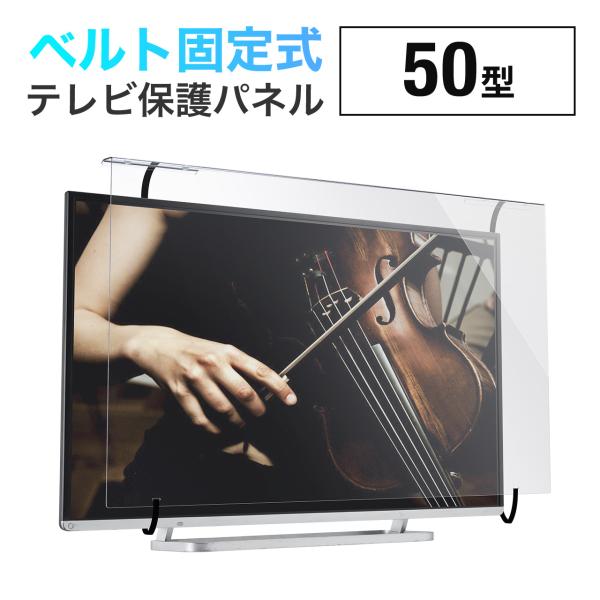 テレビ 保護パネル 液晶テレビ TV フィルター 50インチ 50型 対応 アクリル製 カバー ガード キズ防止 汚れ防止 落下防止ベルト付き 光沢 200-CRT031