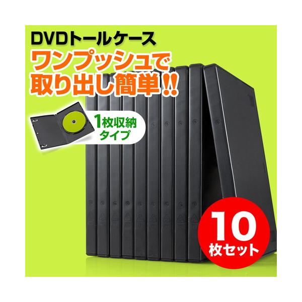DVDをワンプッシュで取り出しできるDVDトールケース。軽くて割れにくいPP樹脂製のDVD収納ケース(1枚収納)。10枚入り。