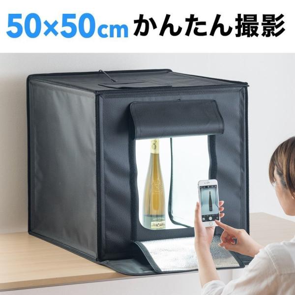 撮影キット LEDライト付 折りたたみ ボックス 撮影ボックス 50cm ライト付き 大型 簡易スタジオ 200-DG016