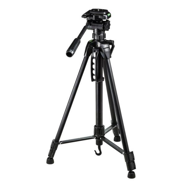 - 型番DG-CAM21N 商品説明【特長】 一眼レフデジカメ&ビデオカメラ対応マルチスタンド 3段タイプ 3段伸長三脚です。 デジタル一眼レフカメラ、ミラーレスカメラ、コンパクトデジタルカメラにまで幅広く対応します。 アルミ材を脚に採用した、軽量な三脚です。 3WAY雲台付きなので縦横撮影位置の切り替えを簡単に行うことができます。 雲台にはカメラの傾きの確認に便利な水準器を装備しています。 三脚に設置しての撮影と、手持ちでの撮影を素早く切り替えれるクイックシューを装備しています。 脚のロック機構はスピーディーに固定と解除ができるレバー式を採用。快適な伸縮操作が可能です。 収納や持ち運びに便利なキャリングケース付きです。 エレベーターハンドル付きなので、高さの微調整が楽にできます。 持ち運びに便利はキャリングハンドル付きです。 石突は接地面に対して角度を変更でき、足場の悪い不安定な場所でもしっかり設置することができます。 三脚の安定を高めるストンバッグようフック付です。 《使用上の注意》 ・この製品は2.5kg(耐加重)までの機材を載せるように作られています。それ以上の機材は載せないでください。 ・マルチスタンドにカメラを取り付けたまま移動すると思わぬ事故を起こすことがあります。 ・脚の開閉が不十分のままカメラを取り付けると、転倒してカメラの破損や怪我を負わせる原因となることがあります。 【仕様】 耐荷重:2.5kg パイプ径:20mm カメラ取り付けネジ:1/4インチネジ 最高地上高:1530mm 最低地上高:580mm エレベーター長:280mm 段数:3段 サイズ:W105×D100×H610mm(たたんだ状態) 重量:1190g 生産国:中国