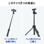 2WAY ミニ三脚 自撮り棒 カメラ三脚 1/4インチネジ カメラネジ スマホホルダー スマホスタンド 360度回転 雲台 耐荷重1kg コンパクト セルカ棒 セルフィー スマホ自撮り 200-DGCAM037 サンワサプライ