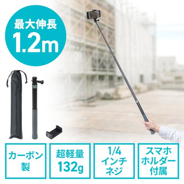 カーボン一脚 高所撮影ポール 軽量 スマホ撮影対応 最大1.2m EZ2-DGCAM048
