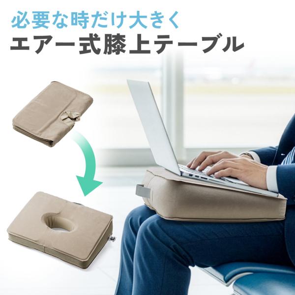 - わずか約300gの軽量設計と折りたたみ収納を備え、狭い車内や機内でも安定した作業環境を実現する心材入り天板と放熱穴搭載の携帯型膝上テーブル。持ち運びにも最適の軽量設計のため、どんな場所でも快適なPCの作業環境を整えることができる。程よい傾斜もついており、PC作業の疲労軽減にもつながる。<特長>●300gの軽量で携帯に便利な折りたたみ式膝上テーブルです。●使用しない時は薄くコンパクトに折りたため、バッグや引き出しにすっきり収納できます。●開いて形を整え、バルブから口で直接空気を吹き込みクッションを作ります。●天板は心材入りで安定してパソコンを操作などできます。●真ん中に穴が開いており、パソコンの熱を効率よく逃がすことができます。●大口のバルブ付きで素早く空気を抜いて折りたたむことができます。●表面は膝上ですべりにくい素材です。●飛行機・新幹線・車内など、どんなスペースでも安定して使えるサイズ設計です。●持ち手付きで、空気を入れた後も持ち運びしやすく移動がスムーズです。●持ち運び用の収納ポーチも付属しています。<仕様>■製品サイズ:約幅37×奥行き26×高さ9cm■製品重量:約300g■材質:PVC/表面フロック加工■カラー:グレー■生産地:中国■取扱説明書:なし■保証期間:初期不良のみ<関連キーワード>膝上テーブル 傾斜台 学習台 コンパクト 持ち運び 車内 疲労軽減 折りたたみ 200-HUS020 サンワサプライ