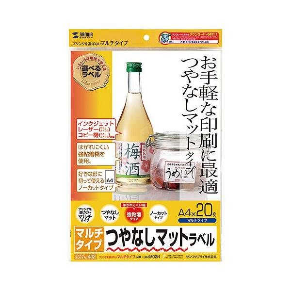 - 特長 ●プリンタを選ばず、マルチに使えるラベル。インクジェットプリンタ、カラー・モノクロレーザー、カラー・モノクロコピーなどで利用できます。※インクジェットプリンタで写真画像中心の印刷には向きません。●つやなしマットタイプのラベルで、文字やイラストなどのお手軽な印刷におすすめです。はがれにくい強粘着タイプ。●粘着剤の剥離力を重く設定しているので、熱のかかるレーザープリンタの中でラベルが剥がれにくくなっています。また、レーザープリンタの中で熱がかかっても糊がはみ出しにくく、ドラムを汚しにくい設計です。●好きな形に切って使える、ノーカットタイプです。※ラベルに対応していないカラー・モノクロレーザープリンタでは使用できません。※カラー・モノクロレーザープリンタには、印刷可能な用紙・ラベルの坪量(138g/以下、など)があります。対応可能な坪量かどうかご確認の上、ご利用ください。※トナーの良好な定着のためには、印刷時に適切な用紙設定が必要です。 概要 ■シートサイズ:A4(210×297mm)■ラベルサイズ:A4(210×297mm)■入り数:20シート、20ラベル入り■重さ:120g/■厚み:0.13mm(ラベルのみ0.07mm)■白色度:82%■対応プリンタ:インクジェットプリンタ※写真画像をきれいに印刷する用途には向きません。カラー・モノクロレーザープリンタ※プリンタによって印刷可能な用紙の厚さ・坪量が異なります。詳しくは各プリンタの取扱説明書をご覧下さい。カラー・モノクロコピー、熱転写プリンタ(インクリボン使用時のみ)*剝離紙には、縦に2本スリット入り。はがしやすい加工をしています。●こちらの商品は、即日発送対象外となります●こちらの商品は、ご注文をいただいてメーカーへ発注を行いますので、お届けまでに3日〜5日かかります。予めご了承の上、余裕を持ったご注文をお願いいたします。詳しい納期につきましては、サポートセンター(03-5812-4584)までお問い合わせください。