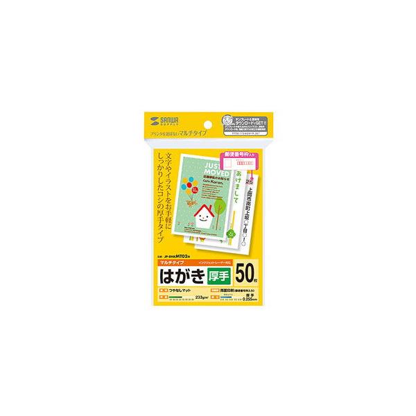 サンワサプライ マルチはがき(つやなしマット・厚手・両面)50シート JP-DHKMT02N 返品種別A