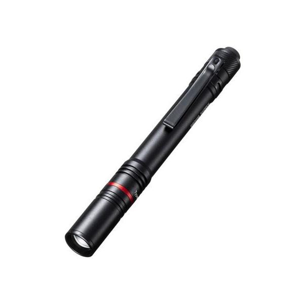 - 【商品説明】USB充電式のペン型LEDライトです。別売りの単四乾電池でも使用可能です。先端を回せば、スポット・ワイド照射の切替が可能です。照射スイッチ操作で3種類の照射モードを選べます。2種類のクリップ固定が可能です。IPX4の防滴規格相当です。【仕様】●光束:300ルーメン、強/約300ルーメン、弱/約80ルーメン ●調光:電源ボタン短押し強→弱→点滅 ●LED数:1粒 ●消費電力:3W ●コネクタ:Type−C ●電源:リチウムイオン電池、もしくは単四電池 2本(別売り) ●連続使用時間:強/1.5時間、弱/2.5時間 ●バッテリー容量:700mAh ●充電時間:2時間 ●照射距離:約80m ●ケーブル長:0.5m ●LED寿命:20000時間 ●使用温度範囲:−10℃〜50℃ ●防水規格:IPX4 ●本体サイズ:直径16×H145mm ●重量:57g ●材質:アルミニウム合金 ●セット内容:本体、充電用USBケーブル、専用バッテリー、取扱説明書 <ジェットプライス>