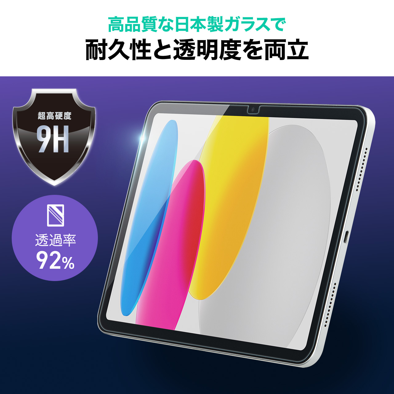 液晶保護フィルム Apple iPad A16 第10世代 10.9インチ用 強化ガラスフィルム 200-LCD070