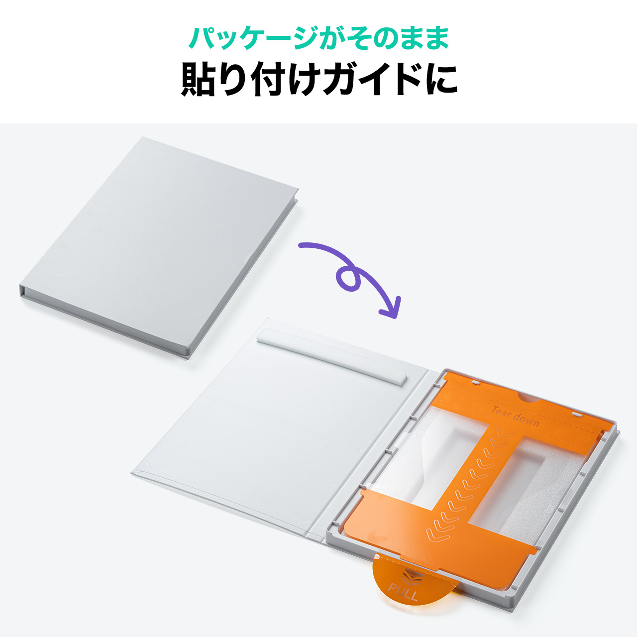 - 日本製ガラス採用の0.33mm強化ガラスの保護フィルム。耐久性と高い透明度を両立。全面密着シリコン接着層で均一に貼り付け可能。両面テープ不要で、液晶全面にしっかり密着。2025 A16 11インチiPad / 2022 第10世代10.9インチiPad専用設計。カット不要で、開封後すぐに装着可能。パッケージがガイダンスになっているので簡単に貼り付け可能。タッチ操作やApple Pencil操作に対応。画面の見やすい高透過ガラス。薄型かつ干渉しにくい貼りやすい設計。<特長>●日本製ガラス採用の0.33mm強化ガラスです。●耐久性と高い透明度を両立しています。●全面密着シリコン接着層で均一に貼り付け可能です。●両面テープ不要で、液晶全面にしっかり密着します。●2025 A16 11インチiPad / 2022 第10世代10.9インチiPad専用設計です。●カット不要で、開封後すぐに装着できます。●パッケージを使って簡単に貼り付けできます。●タッチ操作やApple Pencil操作に対応しています。●高透過ガラスで、画面の見やすさを損ないません。●薄型かつ干渉しにくい貼りやすい設計です。<仕様>■製品サイズ:幅約17.5×高さ24.5cm■製品厚み:0.33mm■タイプ:強化ガラス■タッチパネル対応:対応■入数(枚):1枚■対応機種:2025 A16 11インチ iPad,2022 10世代 10.9インチ iPad■付属品:貼り付けガイドパッケージ、ホコリ除去シート×1枚、クリーニングクロス×1枚■生産地:中国■取扱説明書:日本語取扱説明書あり■保証期間:初期不良のみ<関連キーワード>液晶保護フィルム AppleiPadA16 第10世代 10.9インチ用 強化ガラスフィルム 200-LCD070 サンワサプライ