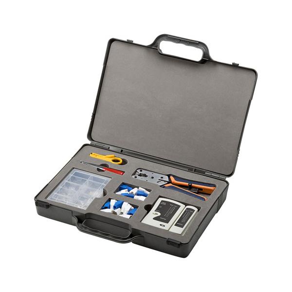 - LANケーブル自作の必需品、工具、コネクタ、テスターをコンパクトにまとめたセット。※箱にキズ、汚れがありますが商品は新品です。<特長>●カテゴリ6LANケーブル、エンハンスドカテゴリ5LANケーブルを自作するためのパーツと工具のセットです。●この工具キット一つで、どこでもLANケーブルを自作することができます。※ケーブルは付属していません。●持ち運びに便利な収納ケース付きです。<仕様>■セット内容(型番):LANケーブルテスター×1(LAN-TST3N)かしめ工具(ラチェット付き)×1(LAN-TL8)スパイキ×1(LAN-TL10)簡易皮むき工具×1(HT-308)モジュラーカバー・先付けタイプ・白×6(ADT-MC4W)モジュラーカバー・先付けタイプ・青×4(ADT-MC4B)モジュラーカバー・先付けタイプ・白×6(ADT-MC7L)モジュラーカバー・先付けタイプ・青×4(ADT-MC7BL)カテゴリ5e RJ-45コネクタ・単線用×10(ADT-RJ45-10S)カテゴリ6 RJ-45コネクタ・単線用×10(ADT-6RJ-10)部品ケース×1/W134×D105×H30mm収納ケース×1/W380×D300×H63mm、1630g
