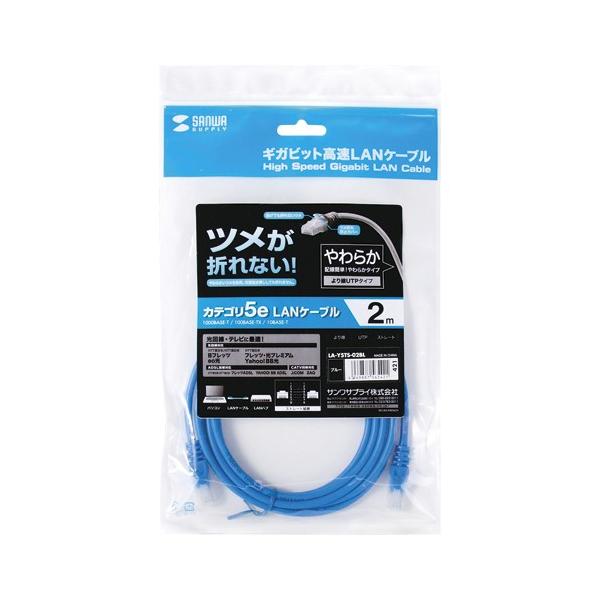 サンワサプライ ツメ折れ防止CAT5eLANケーブル 2m(ブルー)