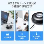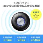- 【本体色】ブラック 【適合規格】Bluetooth5.0(Class2) 【伝送方式】GFSK 【対応コーデック】SBC 【マルチポイント】対応 【実用最大出力】3W 【周波数範囲】2.402~2.480GHz 【通信距離】約10m(理論値) 【送信出力】Class 2 ※Class 1接続機器との接続も可能です。 【対応プロファイル】HSP(ヘッドセット)、HFP(ハンズフリー)、A2DP、AVRCP 【電源】内蔵型リチウムポリマーバッテリー 充電時間/約2.5時間 連続再生最大時間/約12時間 連続通話最大時間/約8時間 連続待受最大時間/約120時間 【マイク感度】-26dBFS 【マイク指向性】無(全)指向性 【マイク周波数】100Hz~8000Hz 【マイク集音範囲】半径約5m(360°) 【製品寸法】幅130×奥行130×高さ41mm 【製品重量】約285g 【付属品】4極ケーブル、充電用USBケーブル、取扱説明書、保証書 対応情報 【対応機種】Bluetooth対応のスマートフォン・iPad・iPhone・パソコン・オーディオ機器 ※HSP/HFP(ハンズフリー通話機能)に対応していること。 ※音楽やワンセグ再生の場合は、A2DP(音楽再生)に対応していること。 ※パソコンがBluetoothに対応していない場合はBluetoothUSBアダプタをお使いください。 ※Bluetooth Ver5.0/4.2/4.1/4.0/3.0/2.1/2.0/1.2対応機器との接続も可能です。 ※class1の機器との接続も可能です。 ≪USB接続時≫ Windows搭載(DOS/V)パソコン、Apple Macシリーズ ※標準でUSBポート(Aタイプコネクタ)を持つ機種。 ≪AUX(4極)接続時≫ 4極3.5mmステレオミニジャックを搭載した音響機器、パソコンなど 【対応OS】Windows 11・10・8.1・8 macOS 15・14・13・12・11、macOS 10.12~10.15、Mac OS X 10.10~10.11 Chrome OS 【特長】 ●Bluetooth、USB、オーディオジャック接続と3種類の接続ができる、 マイクとスピーカー機能が1つになった、会議に最適なBluetoothスピーカーフォンです。 ●4つのマイク搭載で360°全方向の声を拾うことができ、テーブルなどの中央に置いて複数人で、 高品質な音声通話が行えます。 ●Bluetoothでスマートフォンやタブレットにも接続可能で、WEB会議などにも使用できます。 ●優れた音声処理機能のエコー&ノイズキャンセリングを搭載し、クリアな通話を実現します。 ●各操作ボタンは操作音のしないタッチセンサー式です。使用中に操作しても、 音が鳴らないのでノイズが発生しません。 ●音量の大きさ確認やモード切替え時などに、天面のLEDが様々な色に点灯します。 状況が一目で分かるので便利です。 ●付属のUSBケーブルで、スピーカーフォンの充電ができます。 会社でも外出先でも手軽に充電が可能です。 ●小型なので持ち運びにも便利で、省スペースに設置できます。 ●ZoomやMicrosoft Teamsなどの音声通話でも使用可能です。 ※スマートフォンとBluetooth接続した際、通話時はスピーカフォンにある ミュートボタンは使えますが、Zoomなどでは利用できません。 ご注文・配送に関しての注意事項 ■メーカーからの直送品のため、代引きでの対応ができない商品です。 ■軒先渡しの商品のため到着後、お客様で設置していただく必要があります。 ■運送会社の指定及び時間指定等は行えませんので予めご了承願います。 ■取り寄せ商品のため、お客様都合でのキャンセル・返品・交換は致しかねます。 ご注文時に商品仕様等をご確認のうえ、お間違いの無いよう注文お願い致します。 ■納期はメーカー在庫がある場合の目安です。在庫切れの場合は別途ご連絡いたします。 ■在庫切れや納期が予定より延びた場合によるキャンセルは承っております。