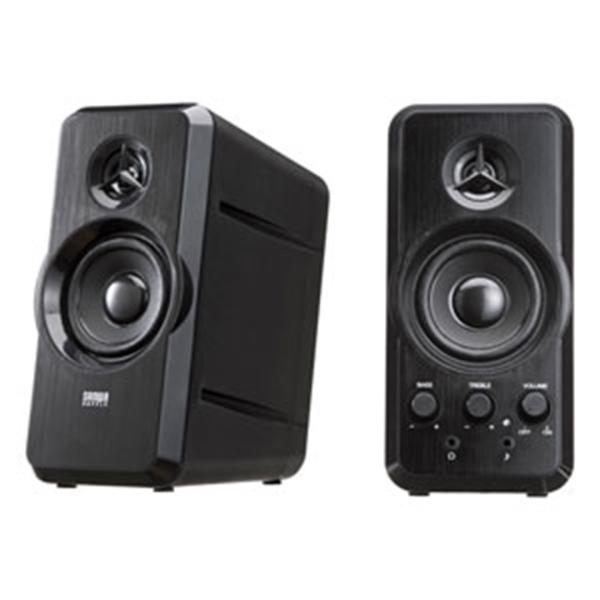 - 透明感のある高音再現が可能なツィーターを搭載し、低音・高音の調整を可能にした2chマルチメディアスピーカー。<特長>●実用最大出力20Wのハイパワーと奥行きのあるハウジングで広がりのある音を再現できる2chマルチメディアスピーカーです。●高音再生専用のツィーターを搭載し、可聴帯域から超高音帯域まで質感高い高品位サウンドを鮮やかに再現します。●深みのある低音域から自然で安定した中音域を再生する2.5インチのウーファーユニットを搭載しています。●操作性の高い大型スイッチ類を採用しており、BASS(低音)、TREBLE(高音)、ボリュームの調整が可能で、視聴環境や音源により細かく調整ができます。●右スピーカーの前面に外部入力(AUX)ジャックを搭載し、メイン音声はパソコン側に接続したまま、スマートフォンやMP3プレーヤーを接続し手軽に出力することができます。 ●デスク上から人の耳へ素直に音を届けるため、スピーカーユニットの角度がやや上向き加減になるよう設計しており、小さな音量でもはっきりと明確に聞き取ることができます。●深夜や周りに気を使う環境にも便利なヘッドホンジャックを搭載しています。 ●重厚感とスタイリッシュな雰囲気を出すヘアライン加工を施したアルミ製パネルを使用しています。●左右のスピーカー間はRCAピンジャックケーブルのセパレート式になっており、市販のRCAピンジャック延長ケーブルで延長することが可能です。●アンプ内蔵でヘッドホンステレオの出力端子やパソコンの音声端子につなぐだけで音楽を楽しめます。 ●電源内蔵なのでコンセント周りをすっきりと配線できます。<仕様>■カラー:ブラック■実用最大出力:20W(10W+10W)■周波数特性:20〜100000Hz■スピーカー形式:バスレフ式フルレンジ スピーカシステム■スピーカーサイズ:2.5インチ(直径約63.5mm)■ツィーターサイズ:1.0インチ(直径約25.4mm)■インピーダンス:4Ω■入力端子:ステレオミニプラグ(3.5mm)■外部出力:ヘッドホンジャック(3.5mm)■電源:内蔵■サイズ:W90×D159×H191mm■重量:1420g(本体のみ)■ケーブル長:スピーカー間ケーブル/約1.5m(RCAピンジャック含む)パソコン接続ケーブル/約 1.5m(3.5mm プラグ含む)電源コード/約 1.5m■保証期間:ご購入日より6ヶ月■取扱説明書:日本語取扱説明書あり■対応機種:10.5インチiPad Pro 2017Surface Pro(2017)12インチMacBook 2015年モデル12インチMacBook 2016年モデル12.9インチiPad Pro 20179.7インチiPad 2017<関連キーワード>4969887574591 マルチメディアスピーカー,高音再現,ツィーター搭載,2ch