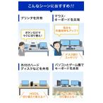複数のパソコンでプリンタやマウス・キーボード、外付けハードディスクの共有に便利です。(※バスパワー仕様の外付けハードディスクやスキャナー等の消費電力が大きい機器を接続する場合は、電力不足により動作が不安定になる場合があります。※マウスやキーボード等、すべての動作を保証するものではありません。)